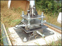 実際の計測現場において計測精度の検証を行いました。写真のような可動式治具にGPSセンサーを取り付け2mm~10mmの強制変位を与えたところ、誤差処理後のGPS計測値(下記グラフの赤線)は強制変位を正確に検出することが検証されました。